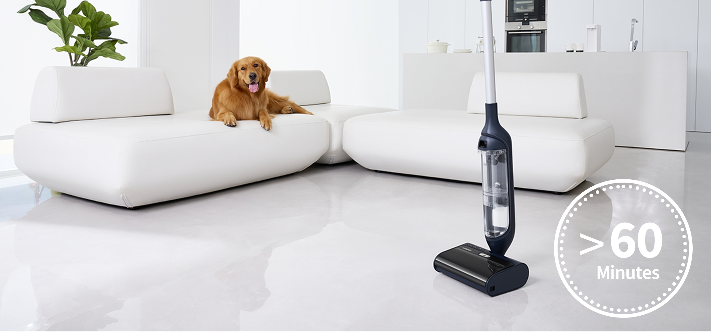 60-minute runtime and low-power design for lasting battery life and reliable cleaning.
